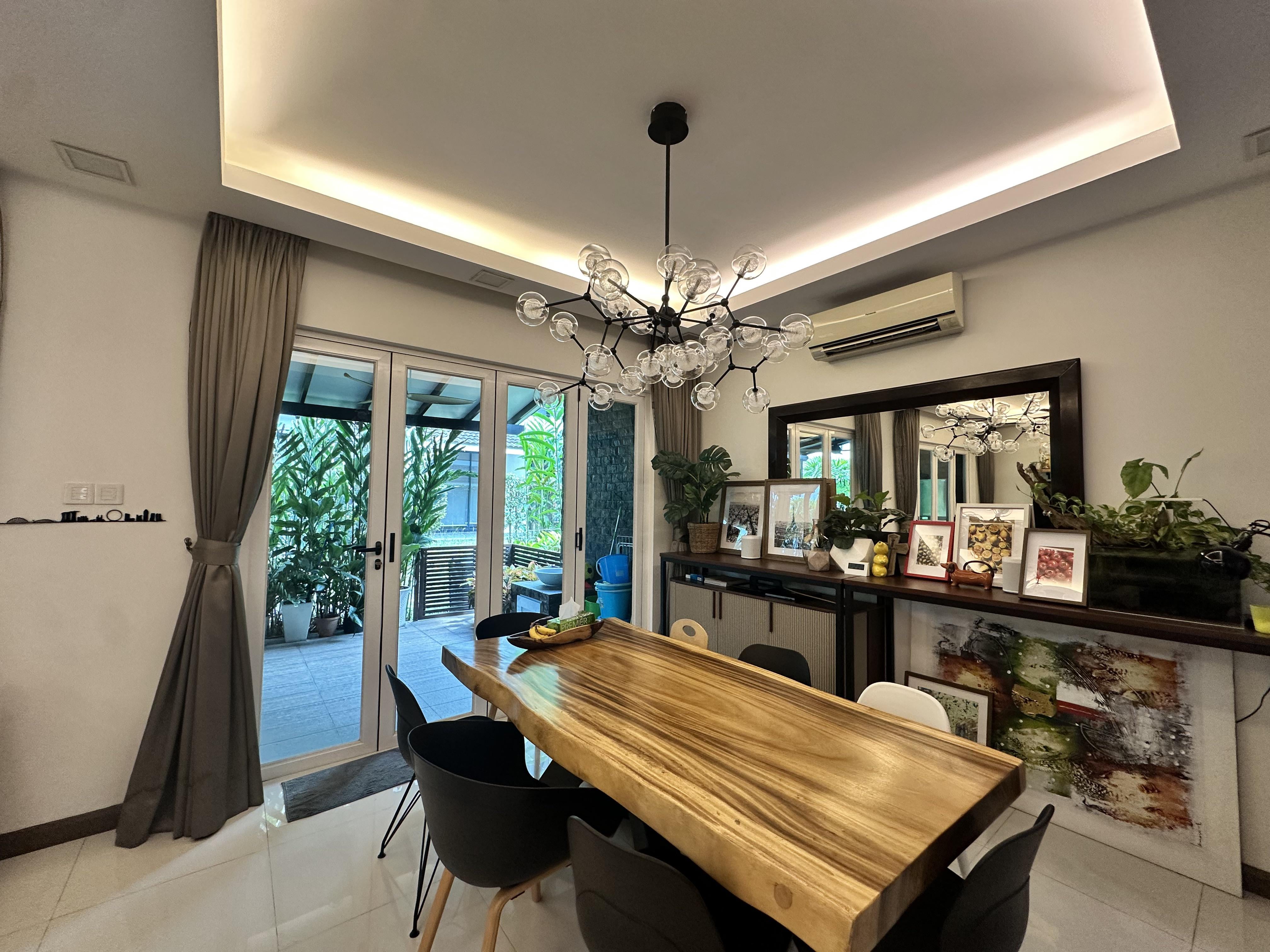 友人や家族を頻繁に迎えるので、フレンチドアを外して室内エリアを拡張して、もっと長いダイニングテーブルを置けるようにしたいと考えています。問題は、現在のフレンチドアの上に隠された構造梁があることです。おそらく、フレンチドアの上のセメントを叩き出すのはせいぜい 1 フィート程度でしょう。天井に視覚的な連続性を持たせるにはどうすればよいでしょうか?漆喰の天井を構造梁がある位置まで下げると、天井全体が低く感じられます。私たちに何ができるか何かアイデアはありますか?我が家では初めてのリフォームです。ありがとう。