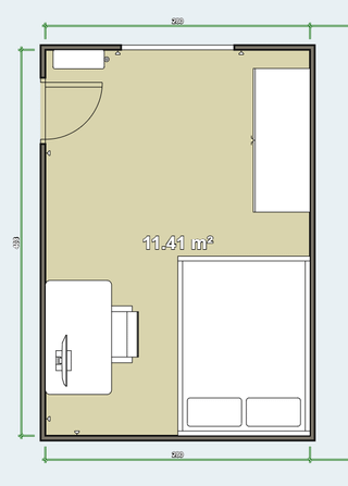 新しいアパートに引っ越したばかりで、自分の部屋、特にベッド、机、大きな鏡張りのワードローブに最適なレイアウトを見つけようとしています。