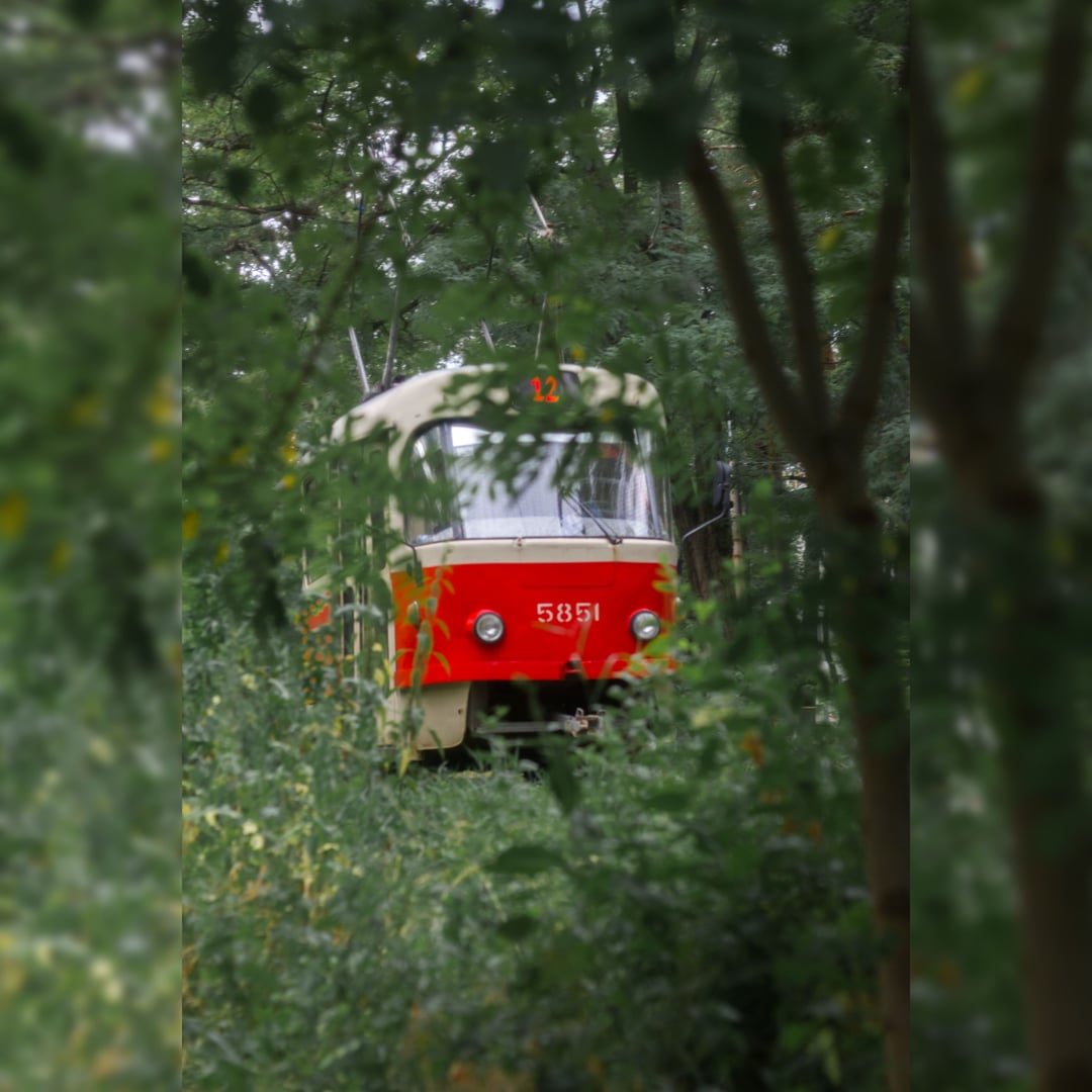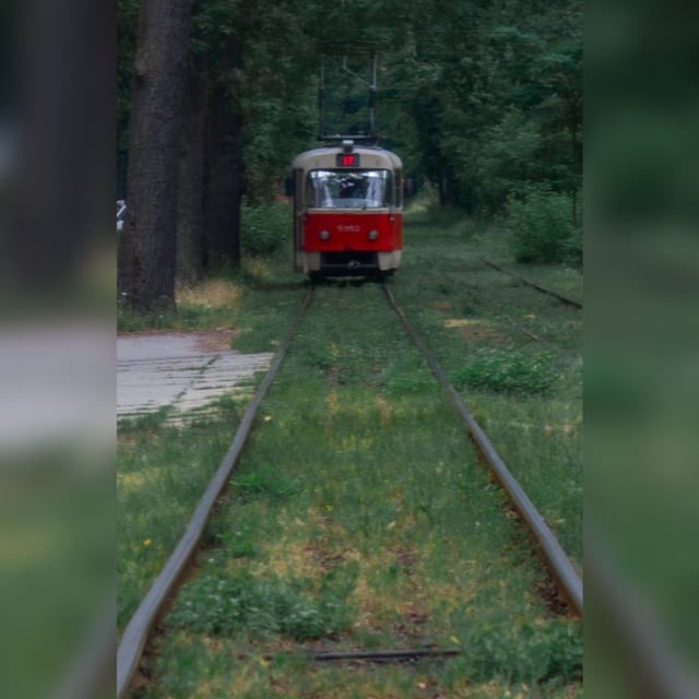 キエフの居心地の良い森林トラム路線