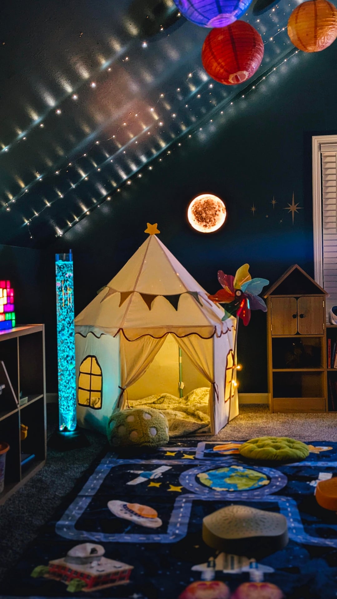 子供のプレイルームを魔法に浸した後/前。