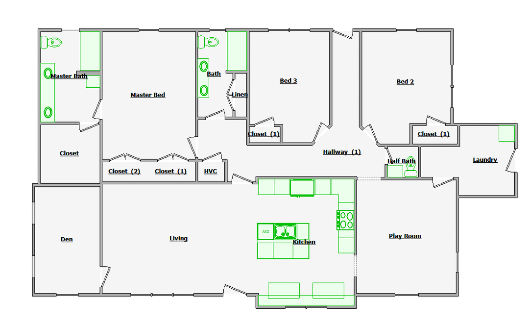 私たちは友人数人から家を購入し、引っ越し前に大規模なリフォームをする予定です。双子の幼児がいるので、彼ら専用のプレイルームが必要です。現在の家と、その後の 2 つの潜在的なリフォームを添付します。しかし、私たちは、「書斎」の平方フィートを外側に拡張して、そこをプレイルームにするという 3 番目の可能性に傾いていると思います。キッチンはオリジナルキッチンのまま。ハーフバスをフルバスにして、クローゼットを入れた壁を吹き飛ばして、壁を1枚だけにする。あとは、本物のダイニング ルームは必要ないので、キッチンからダイニング、リビング ルームまでの流れをどのようにデザインするかを考える必要があります。