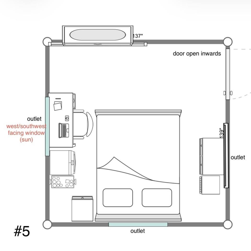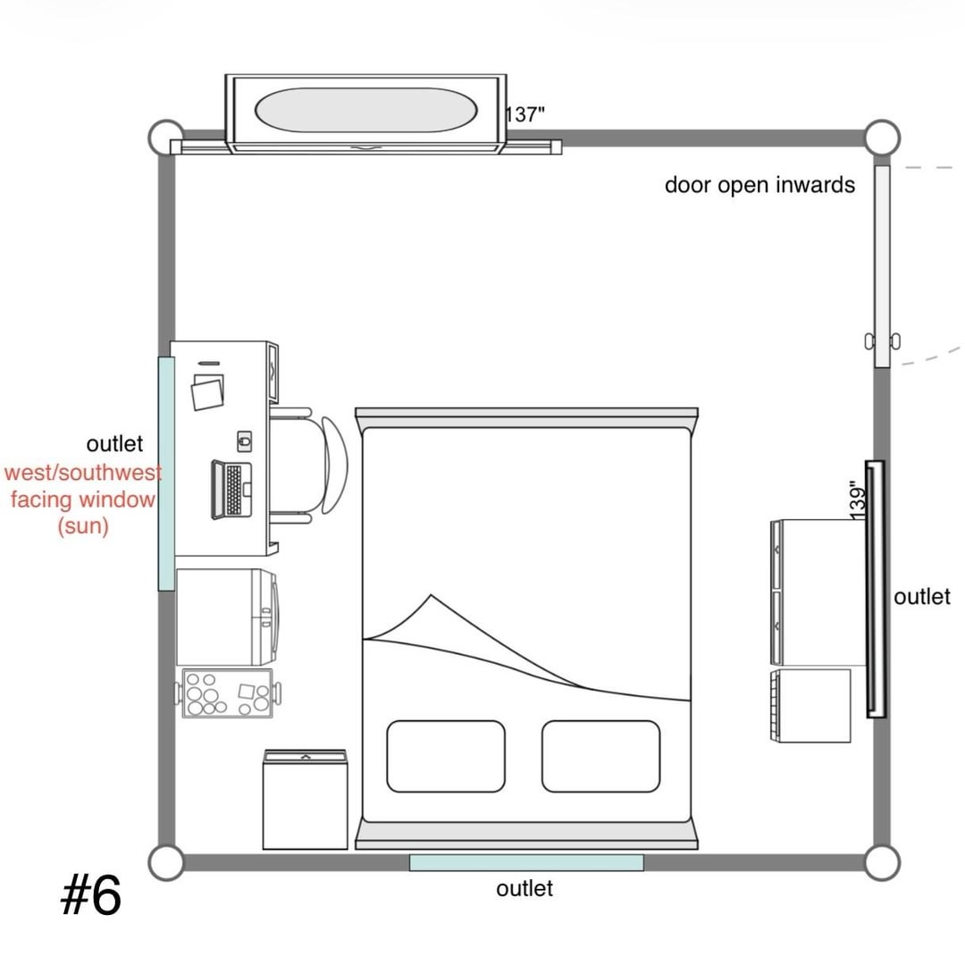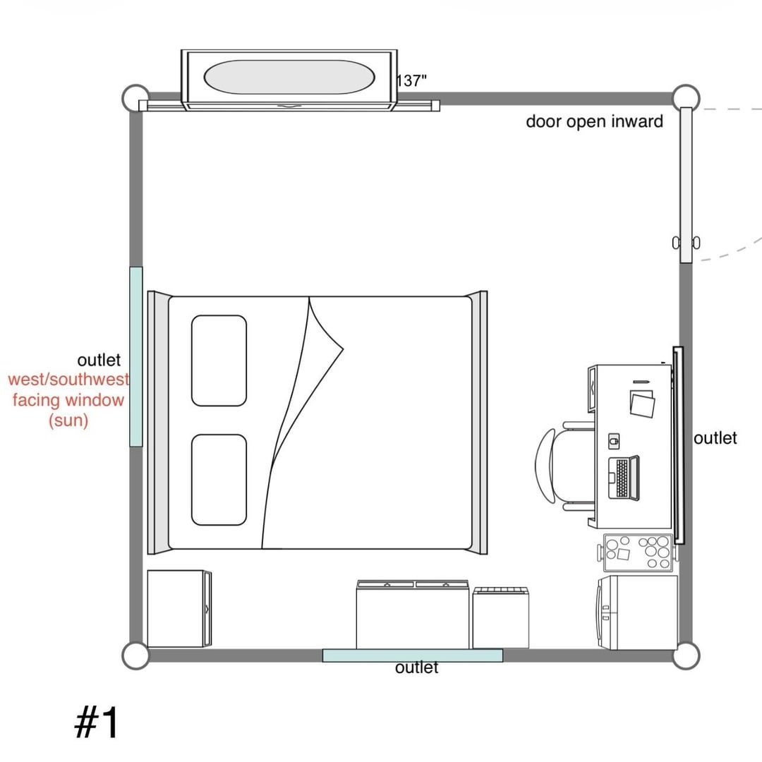 部屋の配置を変えようとしているのですが、以下に考えられる選択肢をいくつか挙げますので、どちらを選択するか決めるのに手助けが必要です。役立つように、各記号の画像も含めました。ぜひご提案ください。