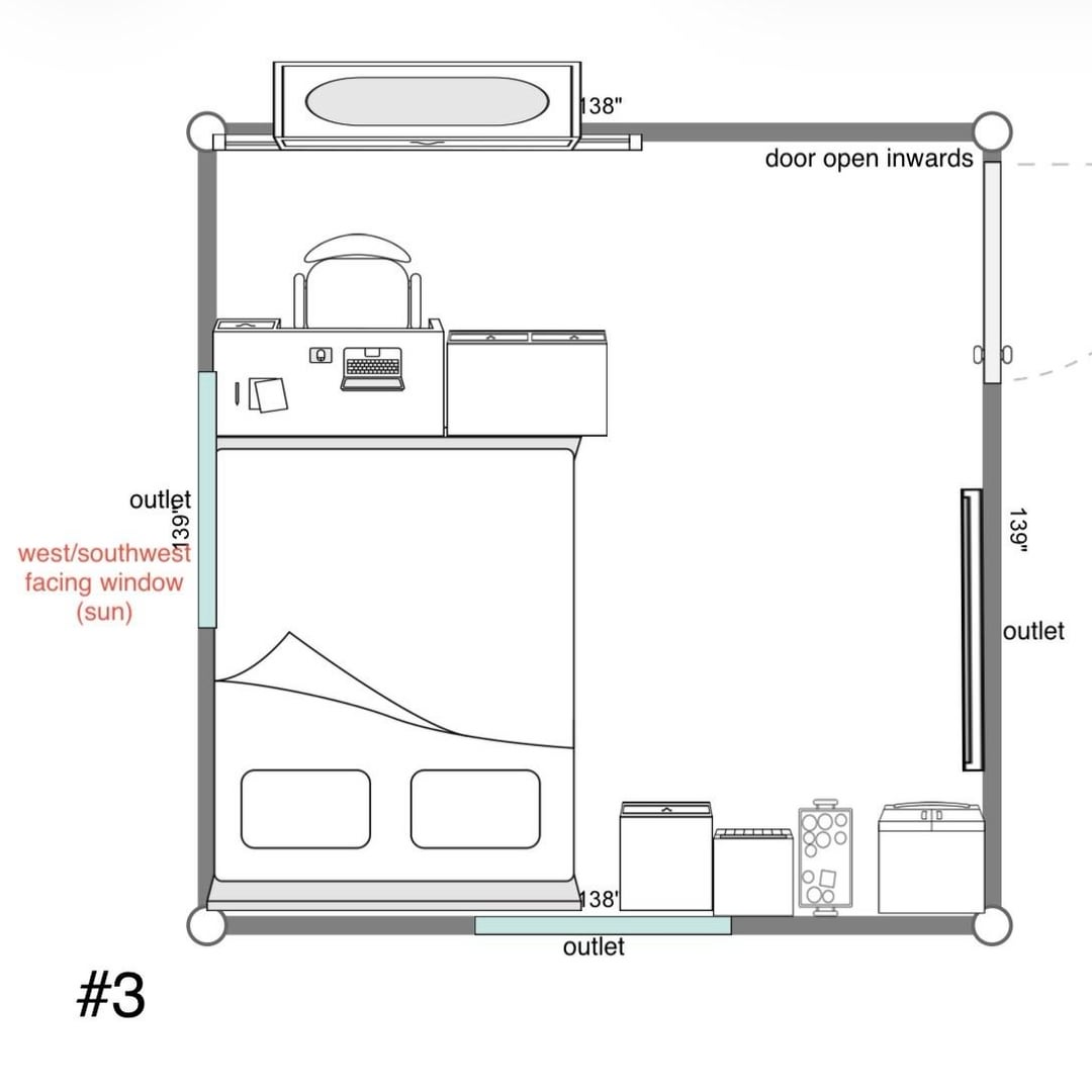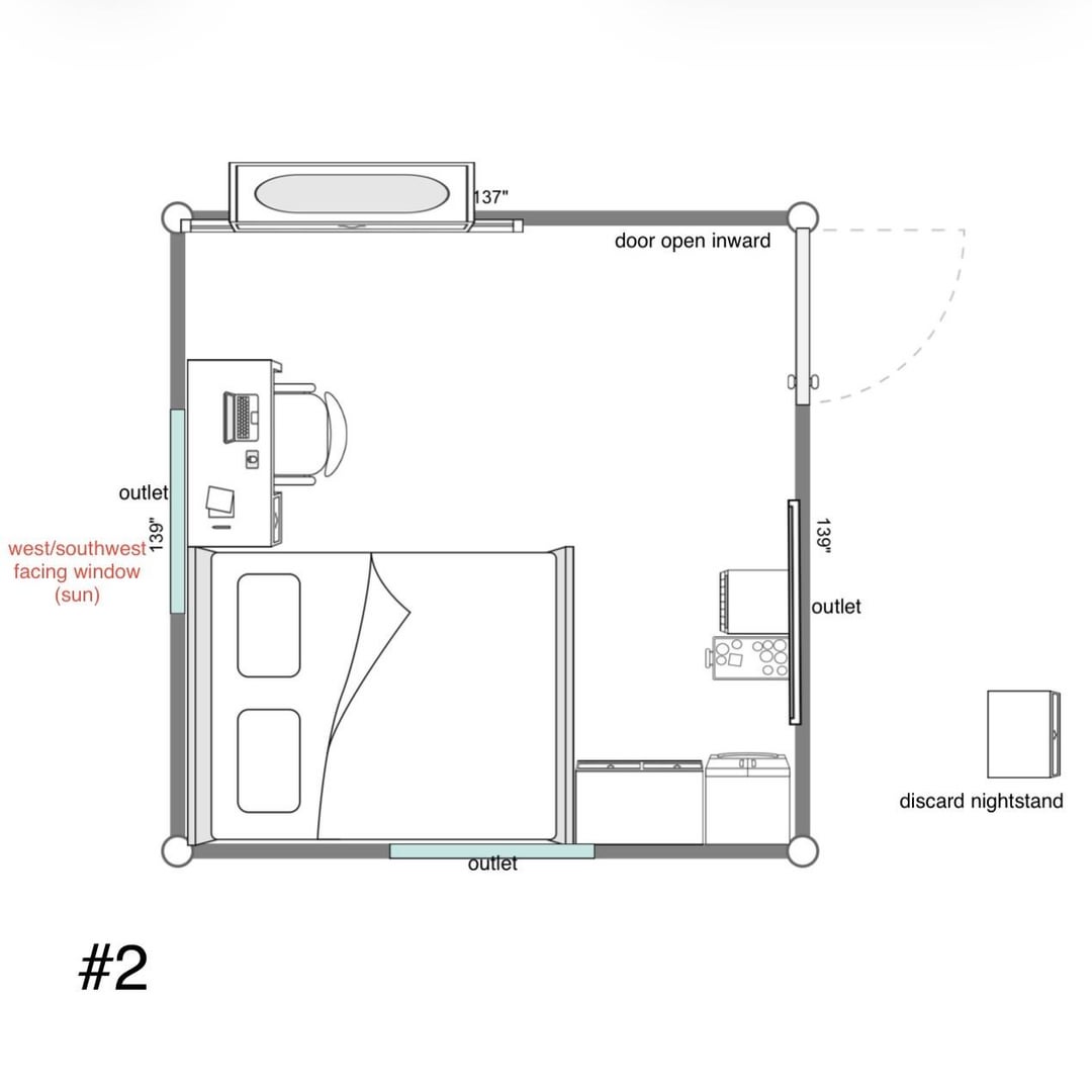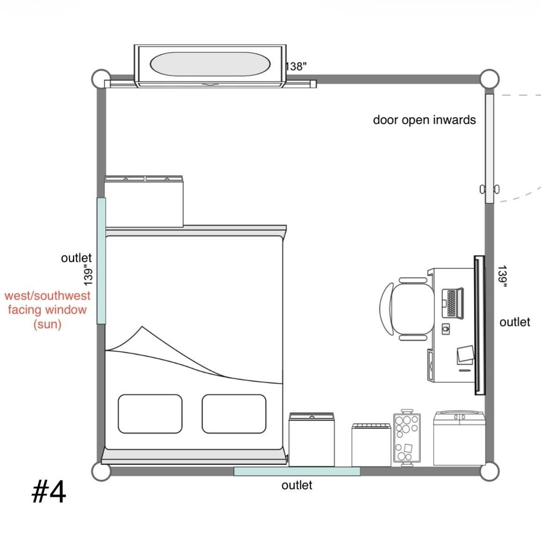 部屋の配置を変えようとしているのですが、以下に考えられる選択肢をいくつか挙げますので、どちらを選択するか決めるのに手助けが必要です。役立つように、各記号の画像も含めました。ぜひご提案ください。