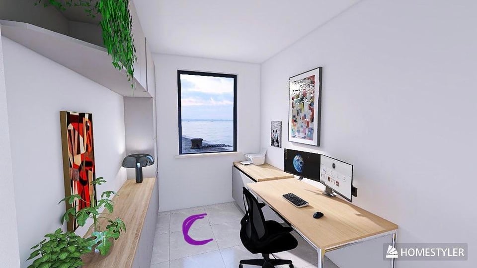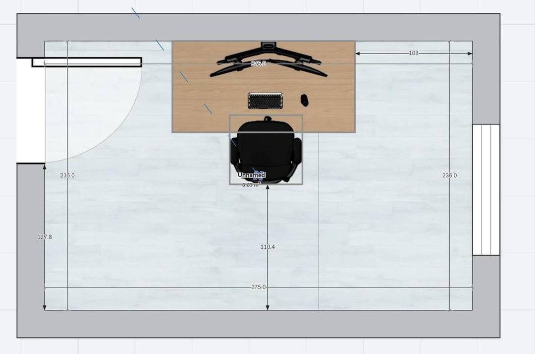 やあみんな!ホームオフィス兼趣味の部屋に最適なレイアウトを見つけるのに苦労しています。小さな長方形のスペース(3.75m×2.36m / 約9平方メートル)です。
