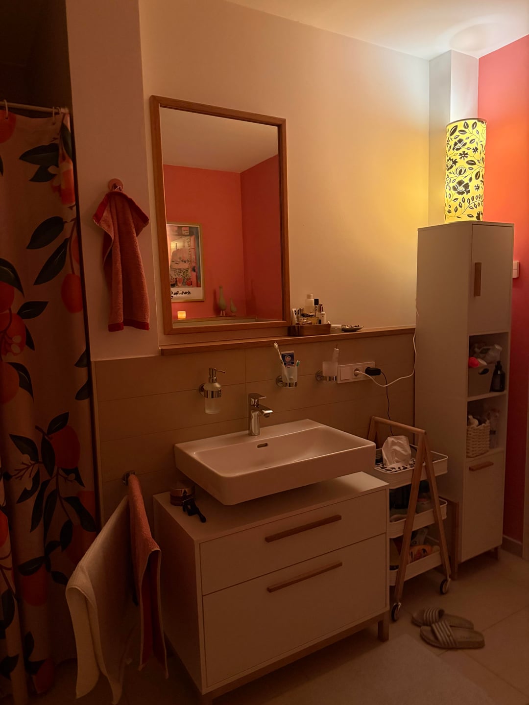 バスルームをピンクに塗りました – キャンドルの心地よい輝きが大好きです 🙂