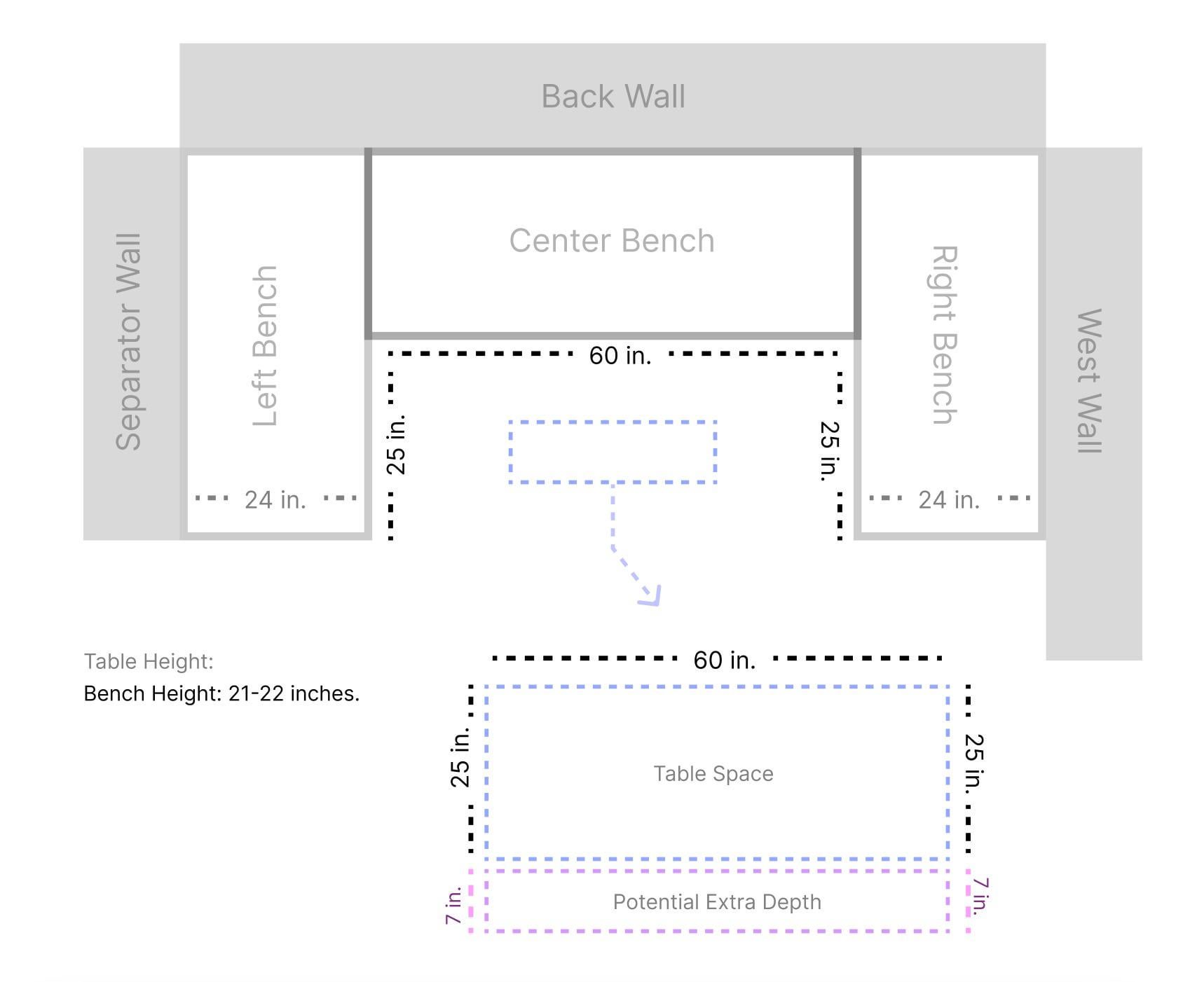 キッチンの宴会用の座席エリアにどのタイプのテーブルを購入すればよいかについてアドバイスを求めています。正式なダイニングルームはありませんので、ここがメインの食事エリアになります。人々が簡単に歩き回れるように、長方形または楕円形の台座を考えています。どちらか一方が他方よりも推奨されますか?考慮すべき長さの考慮事項や制限はありますか?どのくらいの長さがベストなのか全く分かりません 宴会席のない「フリー」側にも椅子を2脚置きたいと考えています。