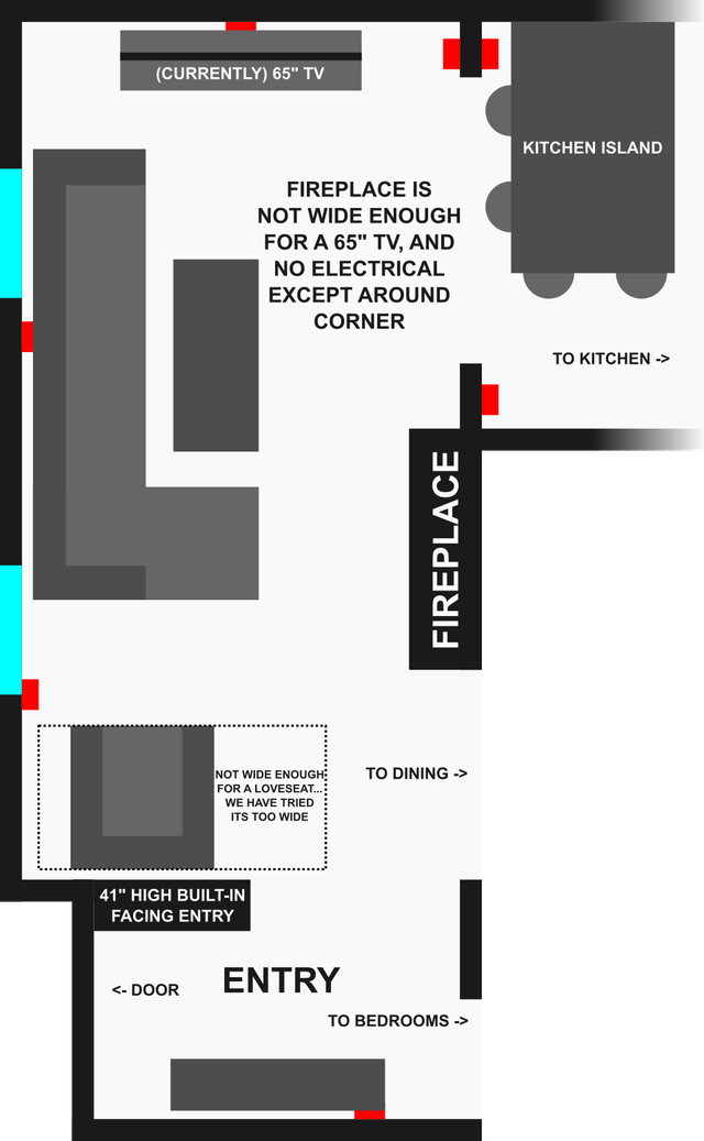 こんにちは、みんな!私のリビングルームの現在のレイアウトは、少なくとも過去15年間は同じです。それはしばらくの間私たちにとってうまくいきましたし、私たちが現在持っている家具にもぴったりです(最近購入した家具はこの部屋専用でしたが、それでも)。