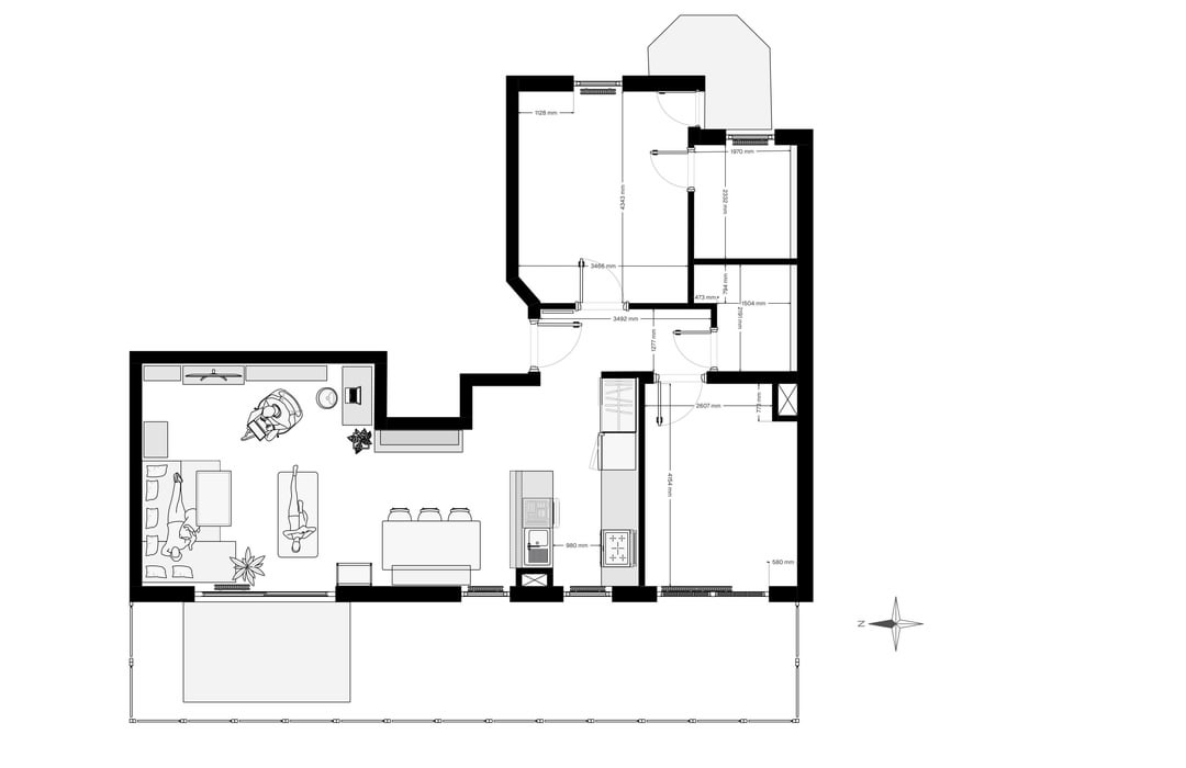 今回はすでに具体的なアイデアがいくつかあります。最初の写真は現在のもので、他の写真は、近くの入り口と組み合わせたキッチン/ダイニングエリアの代替オプションです。
