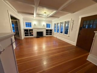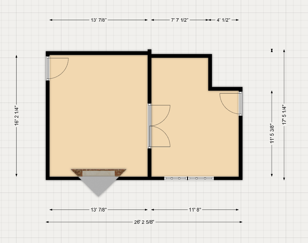 こんにちは!テレビをどこに置くかについては、今のところ良い選択肢がないように感じます。最初の写真は、玄関を入って最初の部屋です(右側)。 2枚目の写真はリビングからフレンチドアを入ったもう一つの部屋で、ここをテレビルームにしようと考えていますが、正直ちょっと狭い気もします。私のパートナーは、暖炉の上にテレビを置くというアイデアを嫌います。そのため、最初の写真では、テレビを窓かフレンチドアの前に置かない限りテレビを置くことが不可能になりますが、これは私からの大きなノーです。 2 番目の部屋 (グリーン ルーム) も、フレンチ ドアと隅の奇妙な小さな隅のせいで、テレビをどこにでも置くのが難しくなります。隅はかなり深くて、テレビを奥まで置いて、フレンチドアの反対側の隅にソファを置くのは奇妙に感じます(ドアはこの部屋に開きます)。最後の写真は、私が作成した大まかな間取り図で、できる限りサイズに合わせて作成しました。テレビとソファを置くのに最適な場所について何かアイデアはありますか?