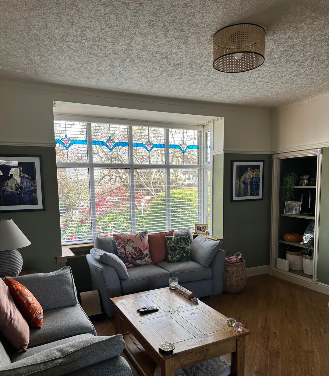 私の 3.6 メートル x 3.75 メートルのキッチン デザインに関するフィードバック: セージ グリーン + 木目調タイル。何を変えますか?