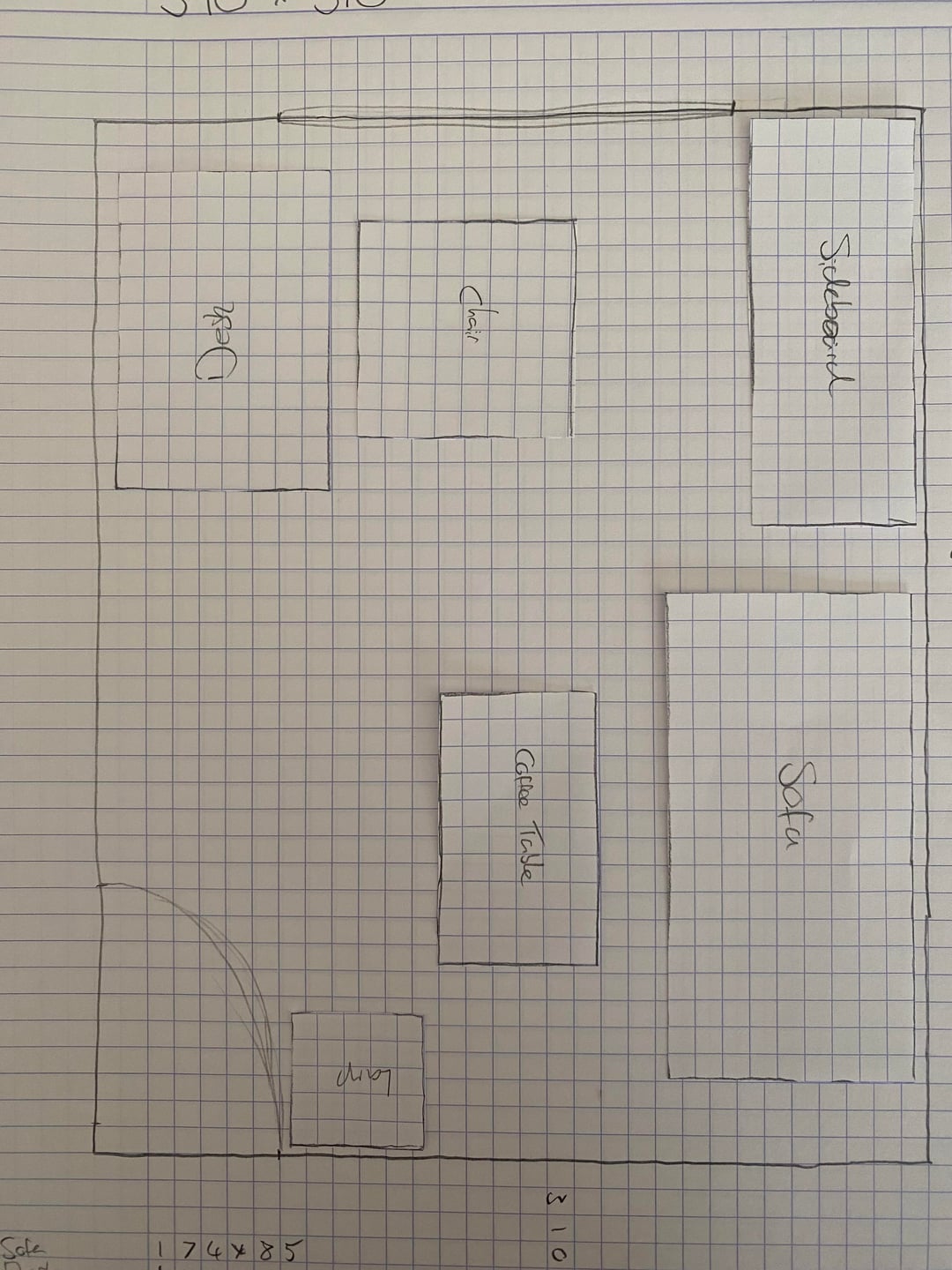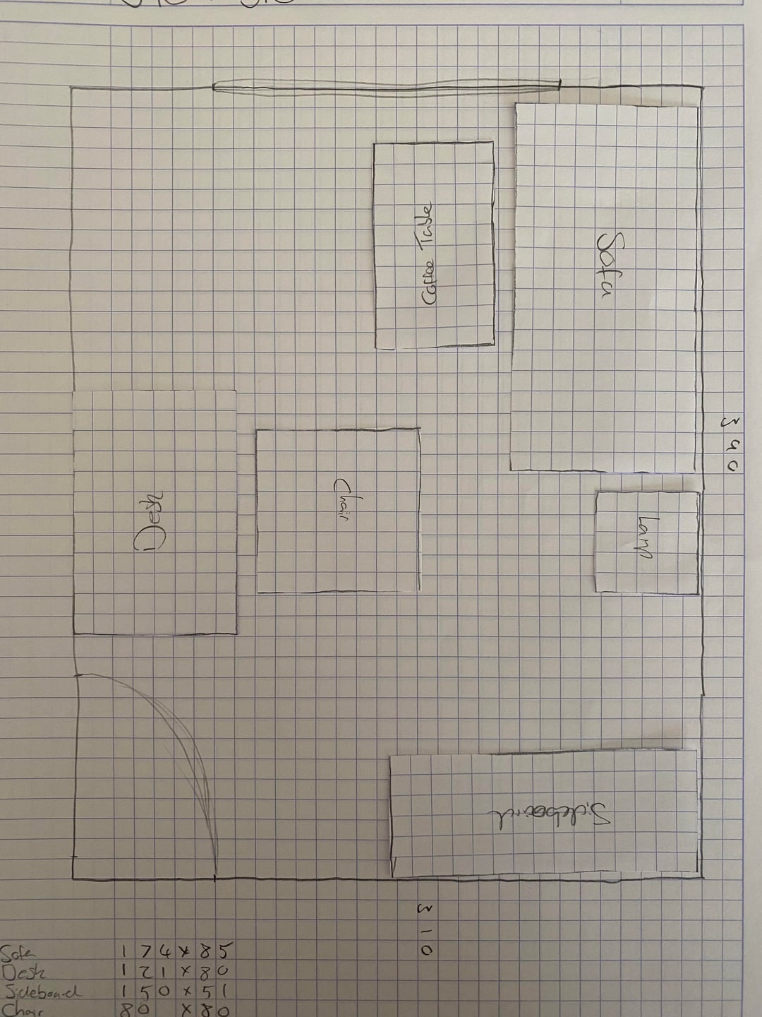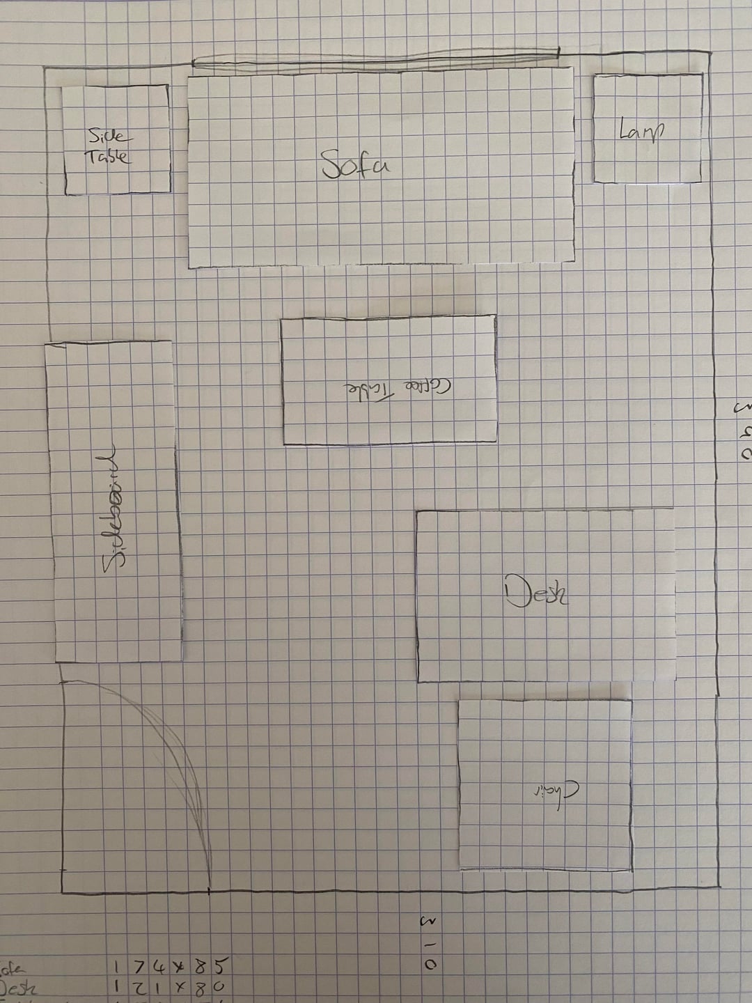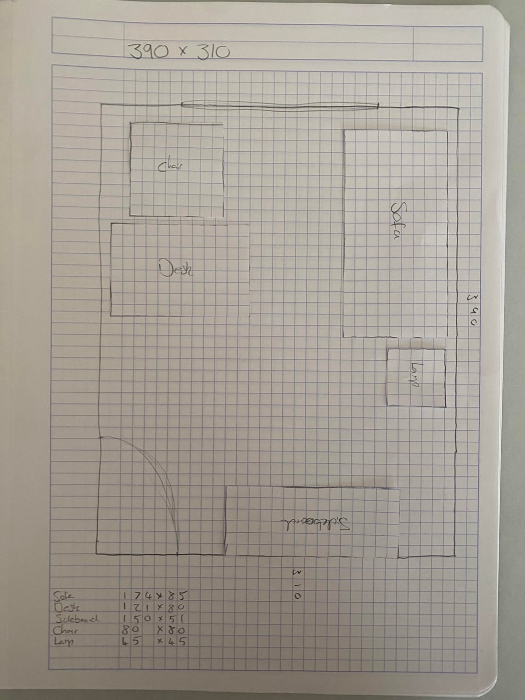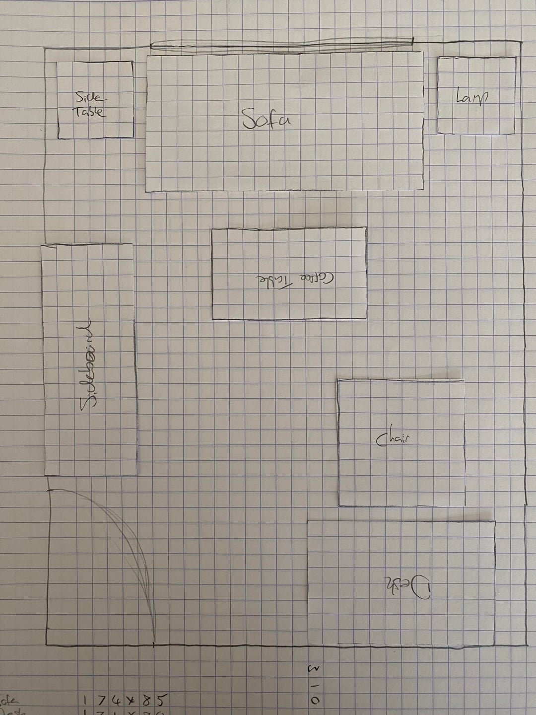 現在のレイアウトの部屋の写真、寸法を示す図面、および私が検討しているレイアウトのアイデアを添付しました。