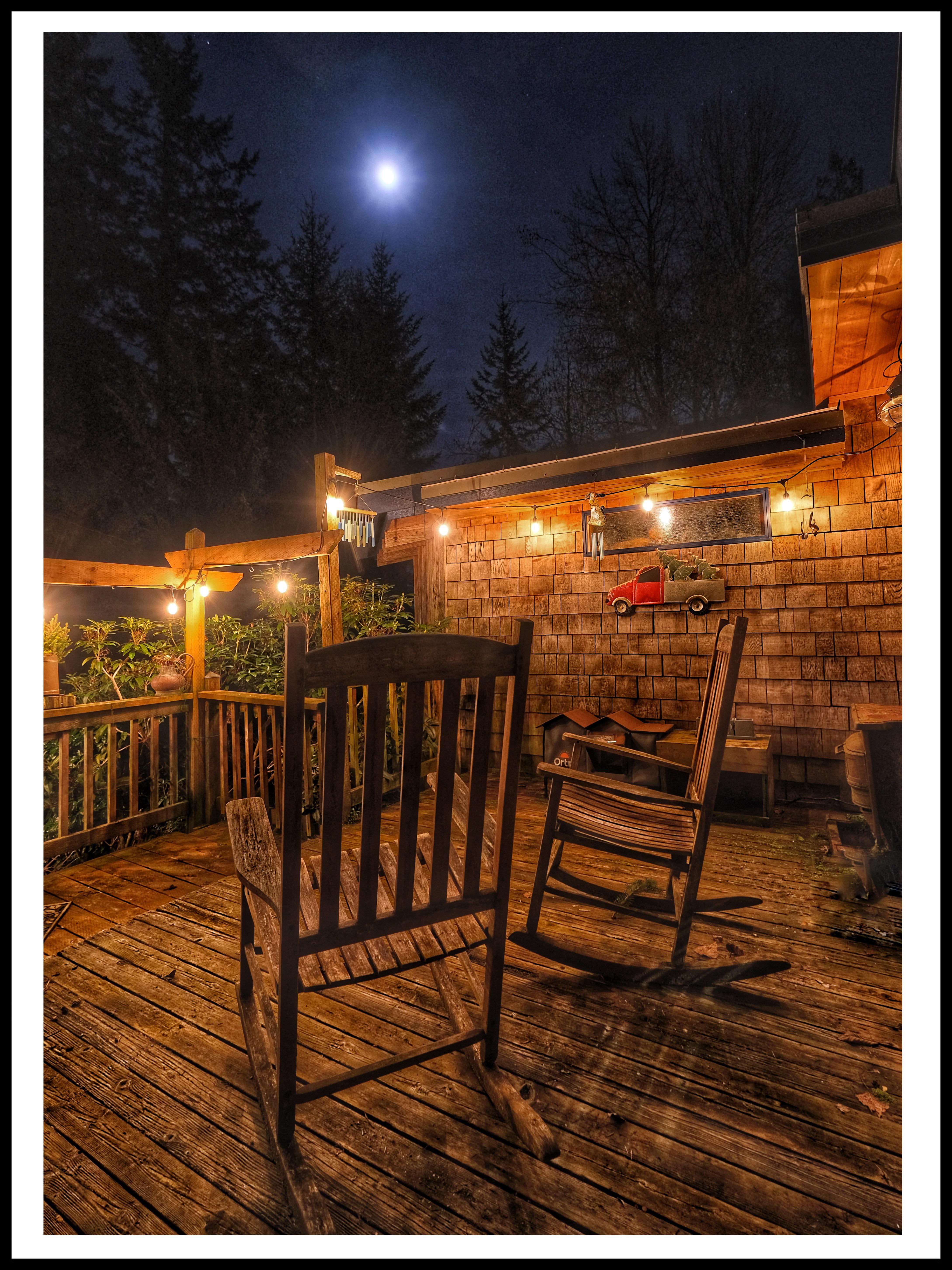 居心地の良い玄関ポーチの上の月