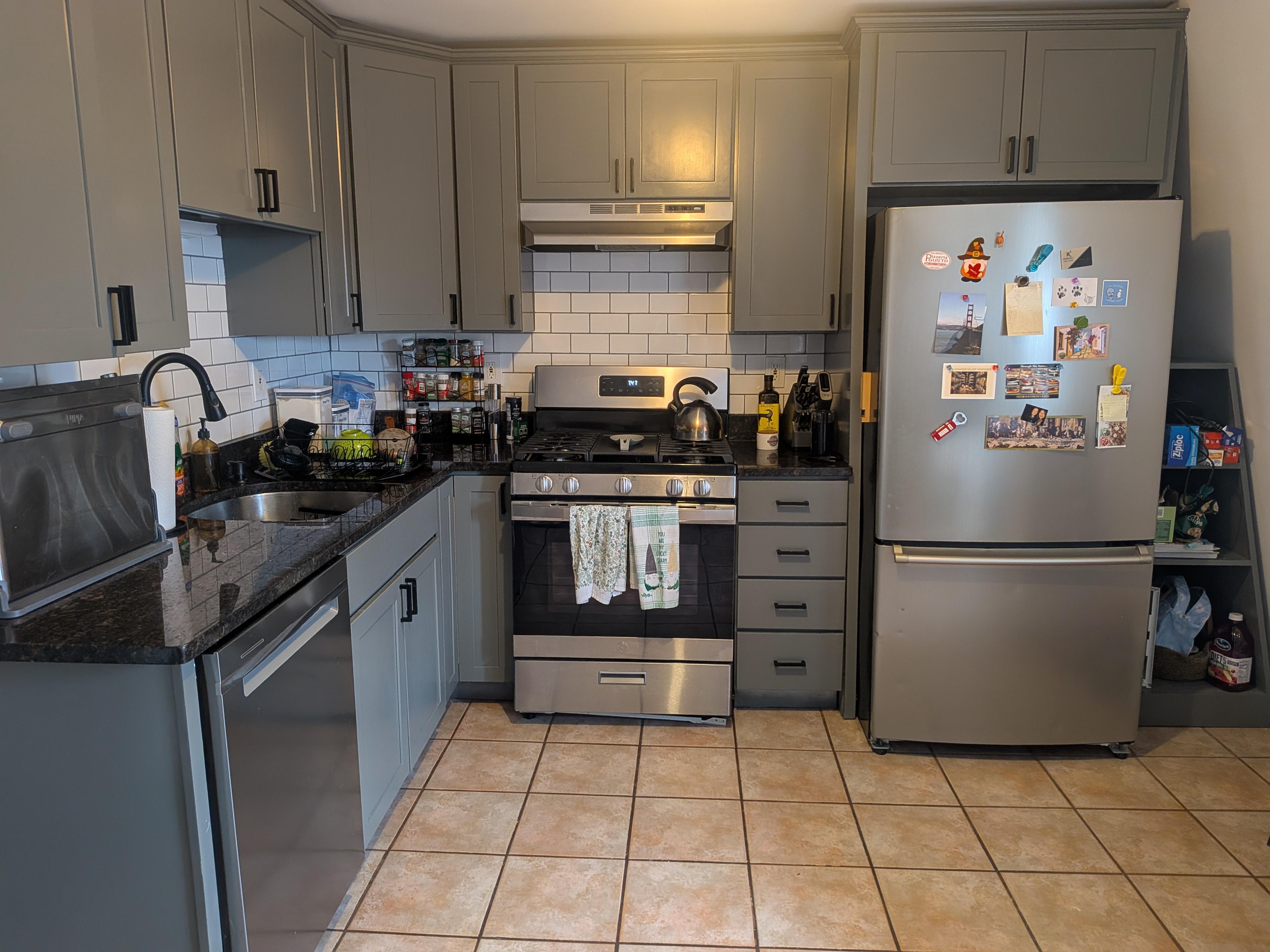 キャビネットはシャーウィン・ウィリアムズ・アマースト・グレーですが、私にはとても緑に見えます。 ダイヤモンド パターンのチェッカーボード オプションを検討しましたが、このラミネート オプションがどのように感じられるかわかりません。8×8 タイルは小さくなるかもしれないと考えています。 https://www.flooranddecor.com/duralux-performance-flooringIferentino-noche-checkerboard-waterproof-rigid-core-luxury-vinyl-tile–foam-pad-101300929.html これら 2 つを一緒にすると: https://www.flooranddecor.com/checkerboard-tile/marble-artmatte-Square-ceramic-tile-101442218.htmlhttps:/www.flooranddecor.com/checkerboard-tile/midnight-matte-square-ceramic-tile-101442192.html もっとカラフルなものにはこんな感じも! https://www.flooranddecor.com/porcelain-tile/blume-decoporcelain-tile-100782747.html
