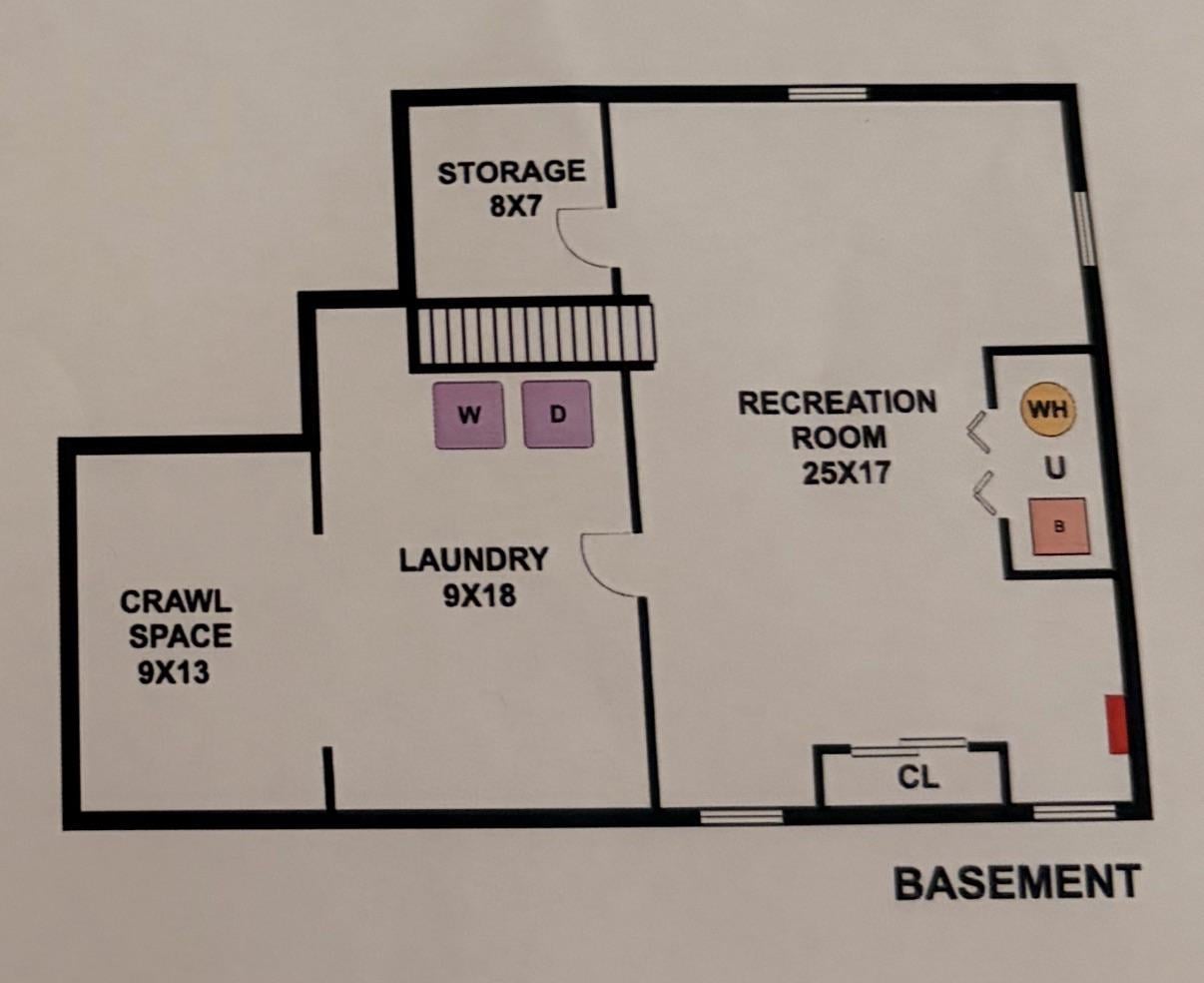 このフロアプランの下部にある「クローゼット」の隣にいくつかの造り付けの棚があります。窓はどれも小さくて高い。