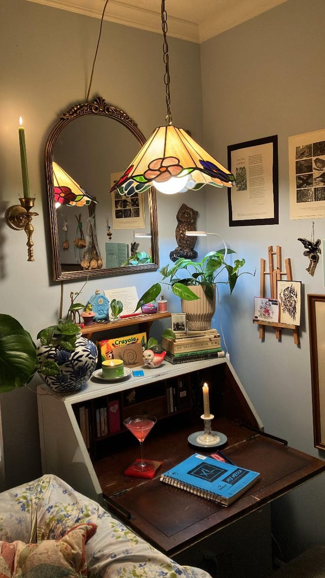 私の居心地の良い小さなデスクの隅には、この新しい古いランプが飾られています。