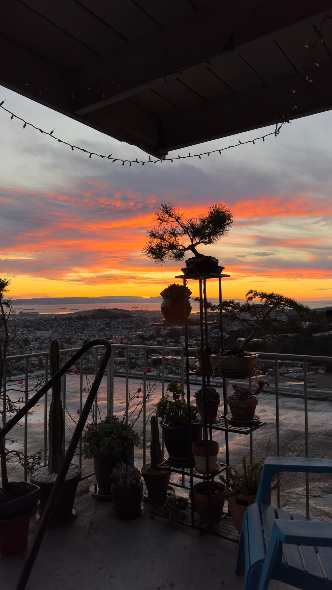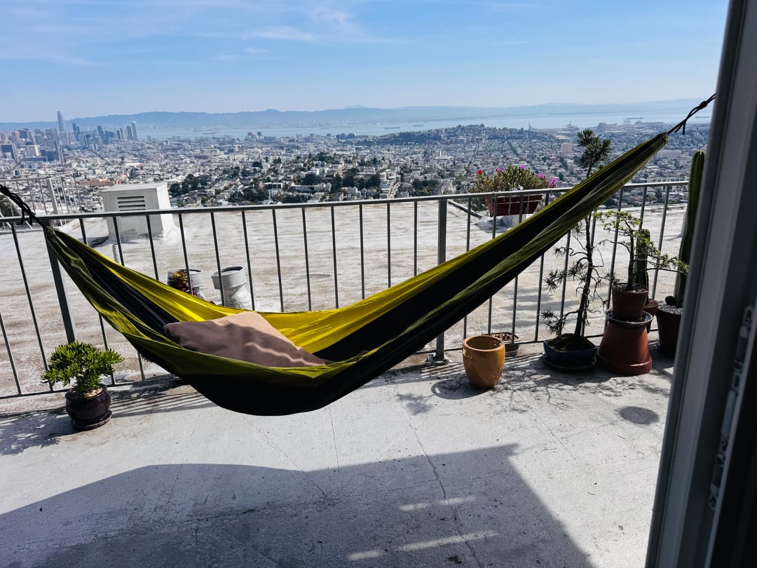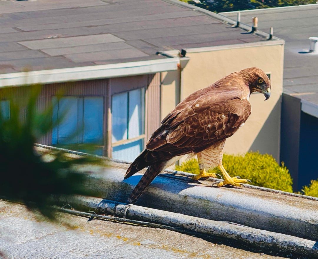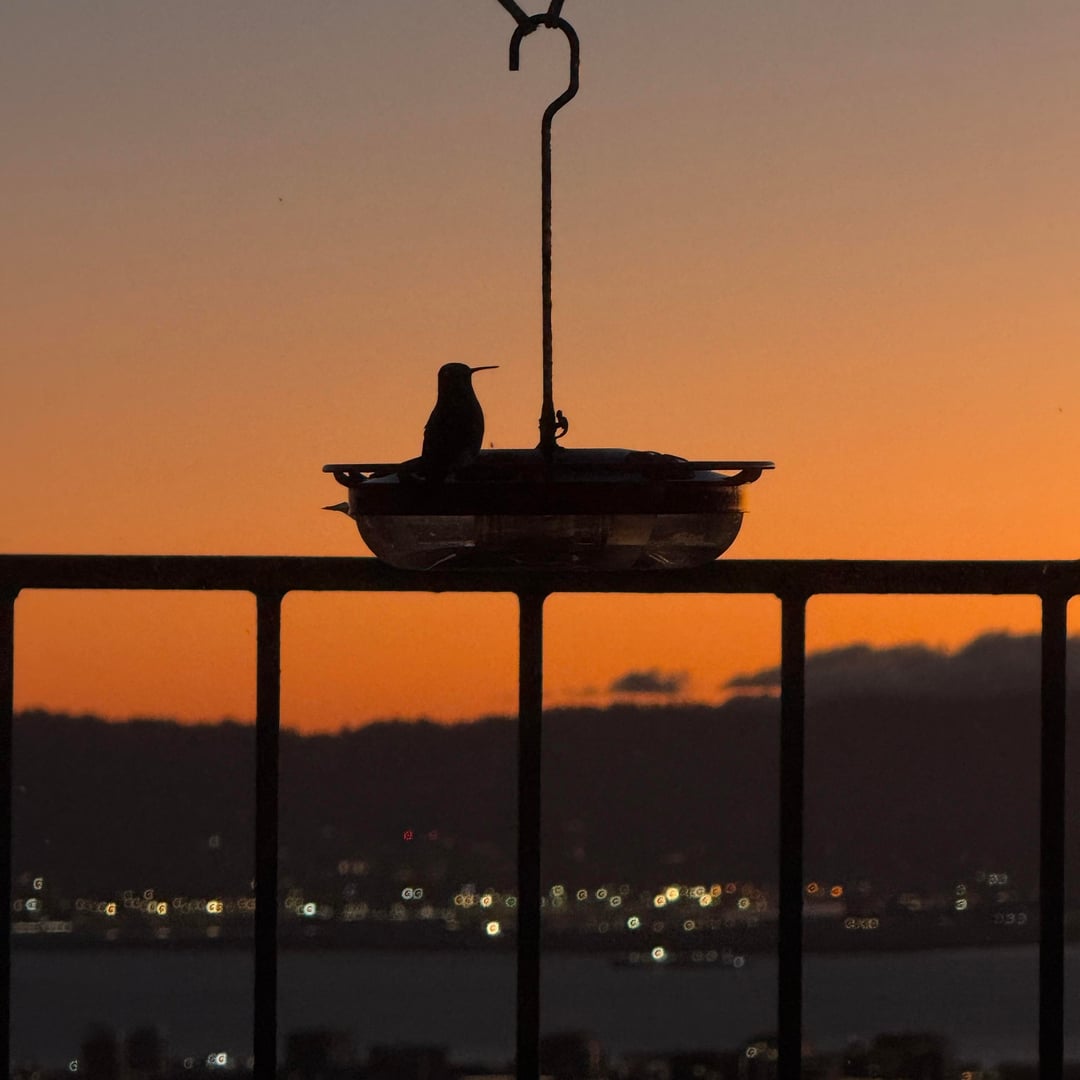 ハチドリのバリーと鷹のラリーがいる居心地の良いバルコニー